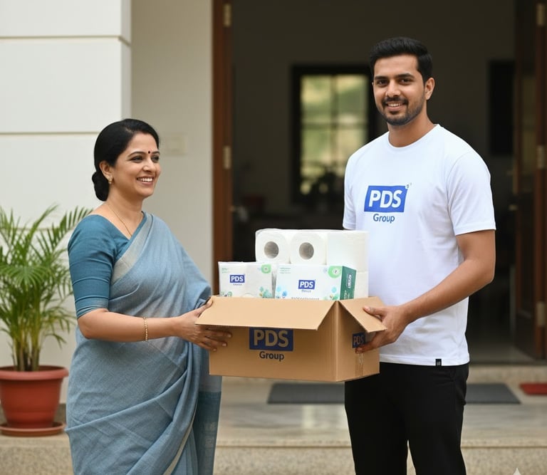 PDS Group provides end-to-end private labeling solutions, enabling businesses to launch tissue paper products under their own brand with assured quality, hygiene, and bulk manufacturing support.